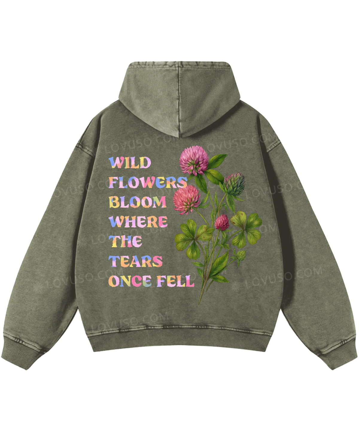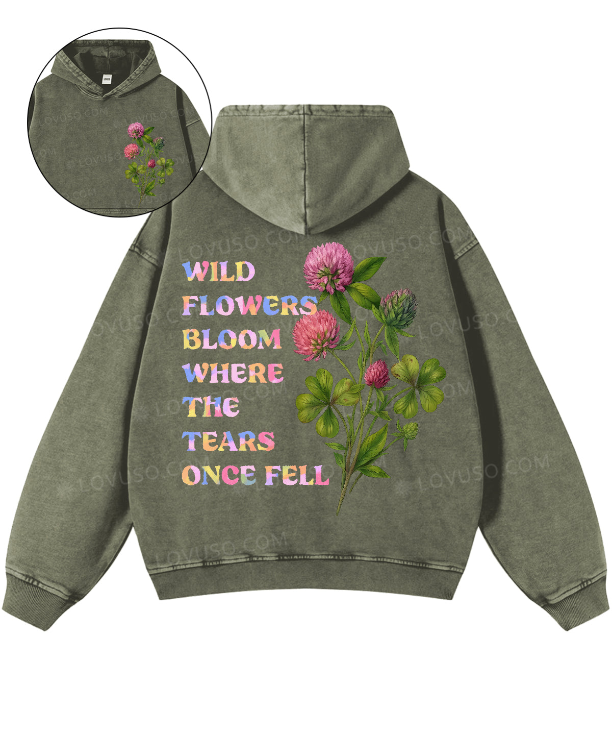 Wild Flowers Bloom Where The Tears Once Fell Double Sided Washed Hoodie