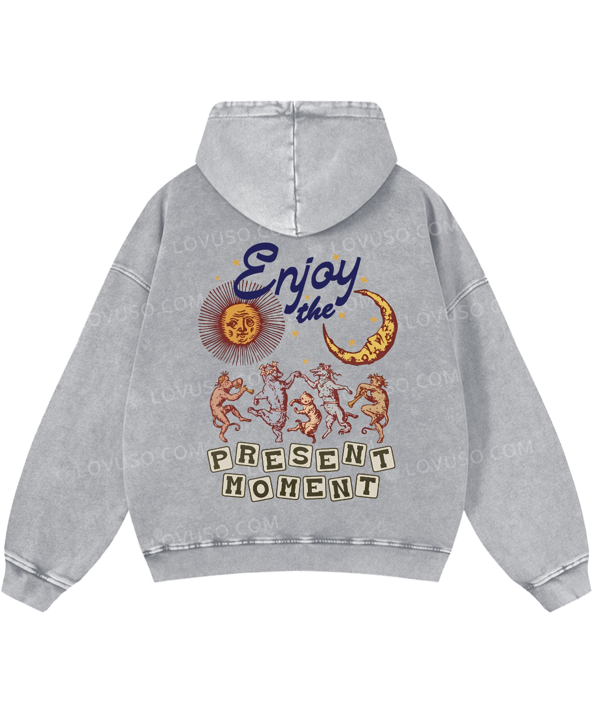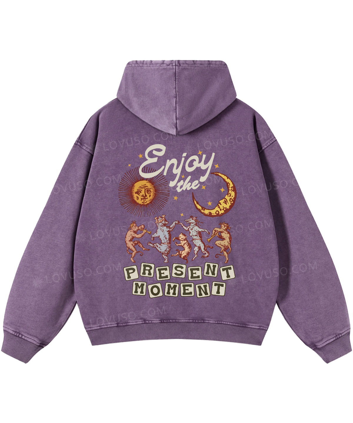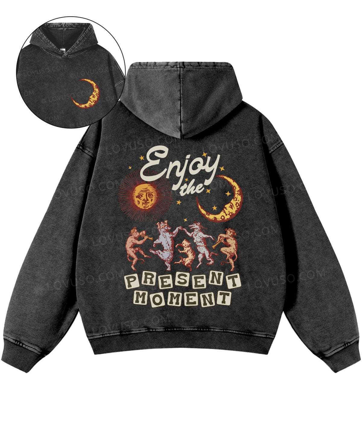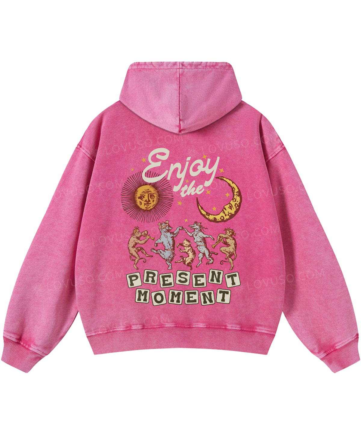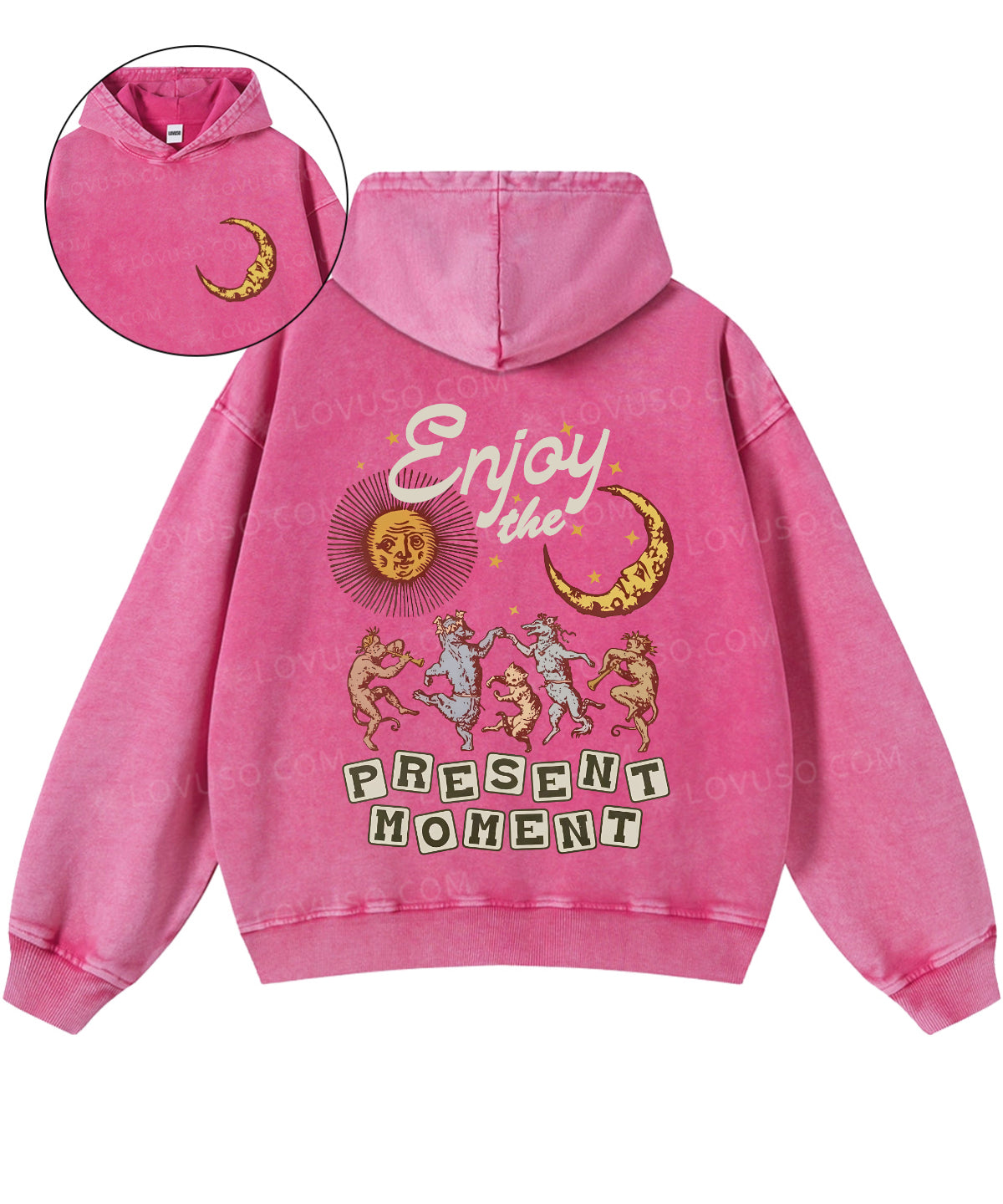 Enjoy The Present Moment Double Sided Washed Hoodie