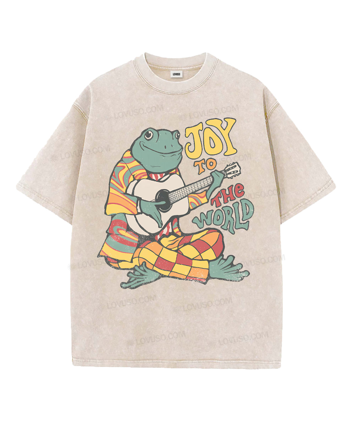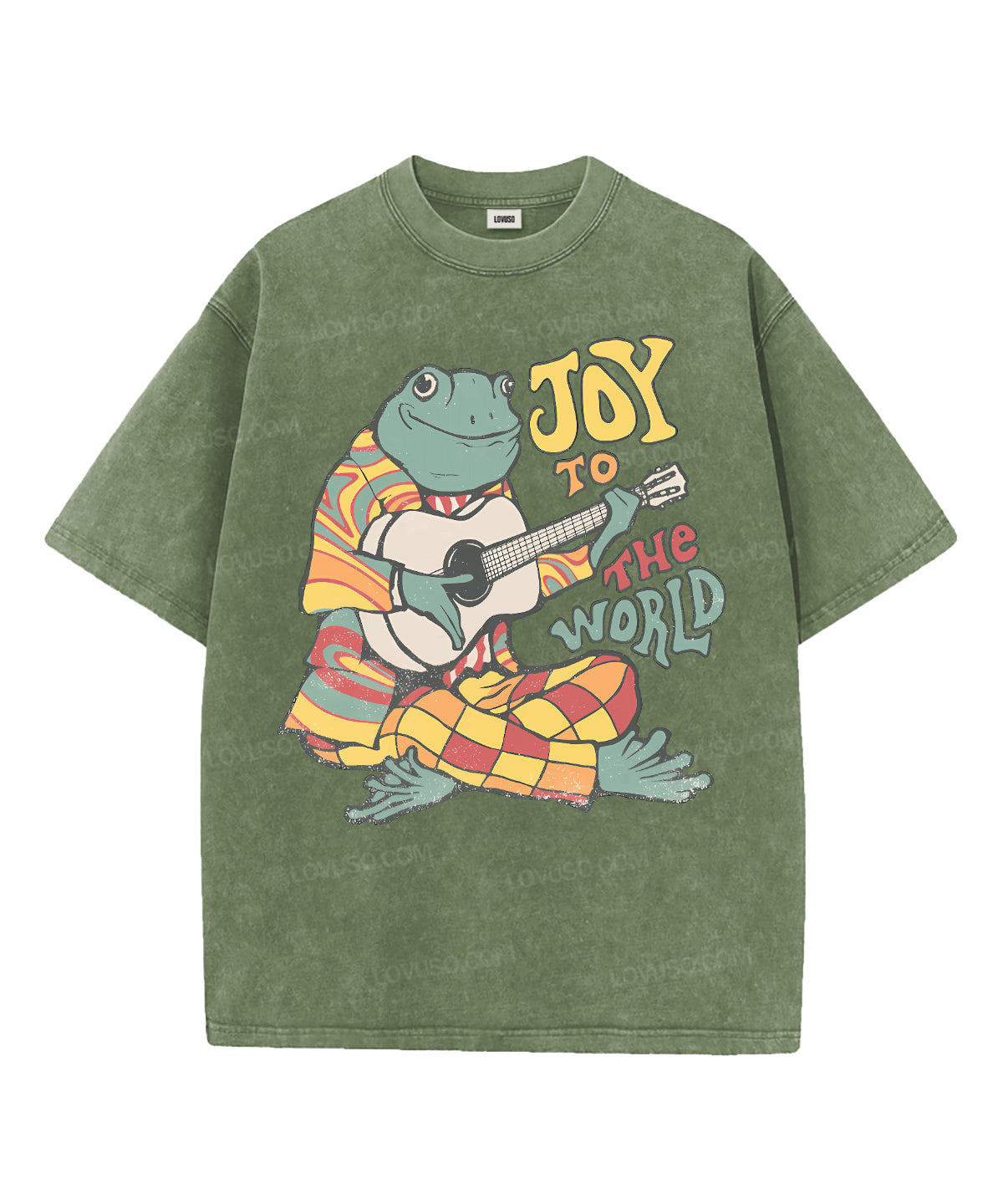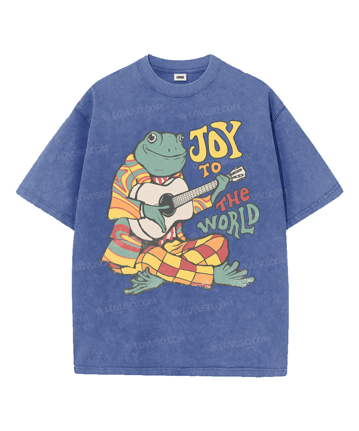 Funny Frog Joy To The World Double Sided Washed T-shirt