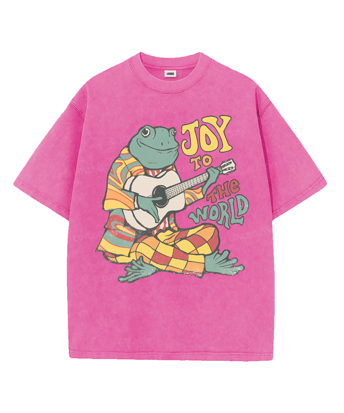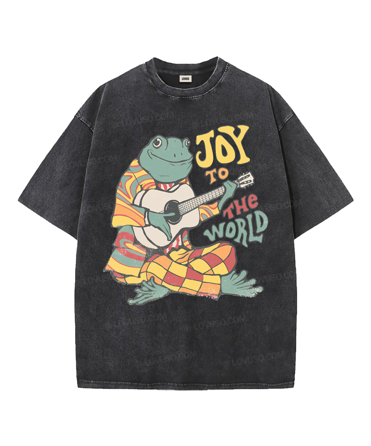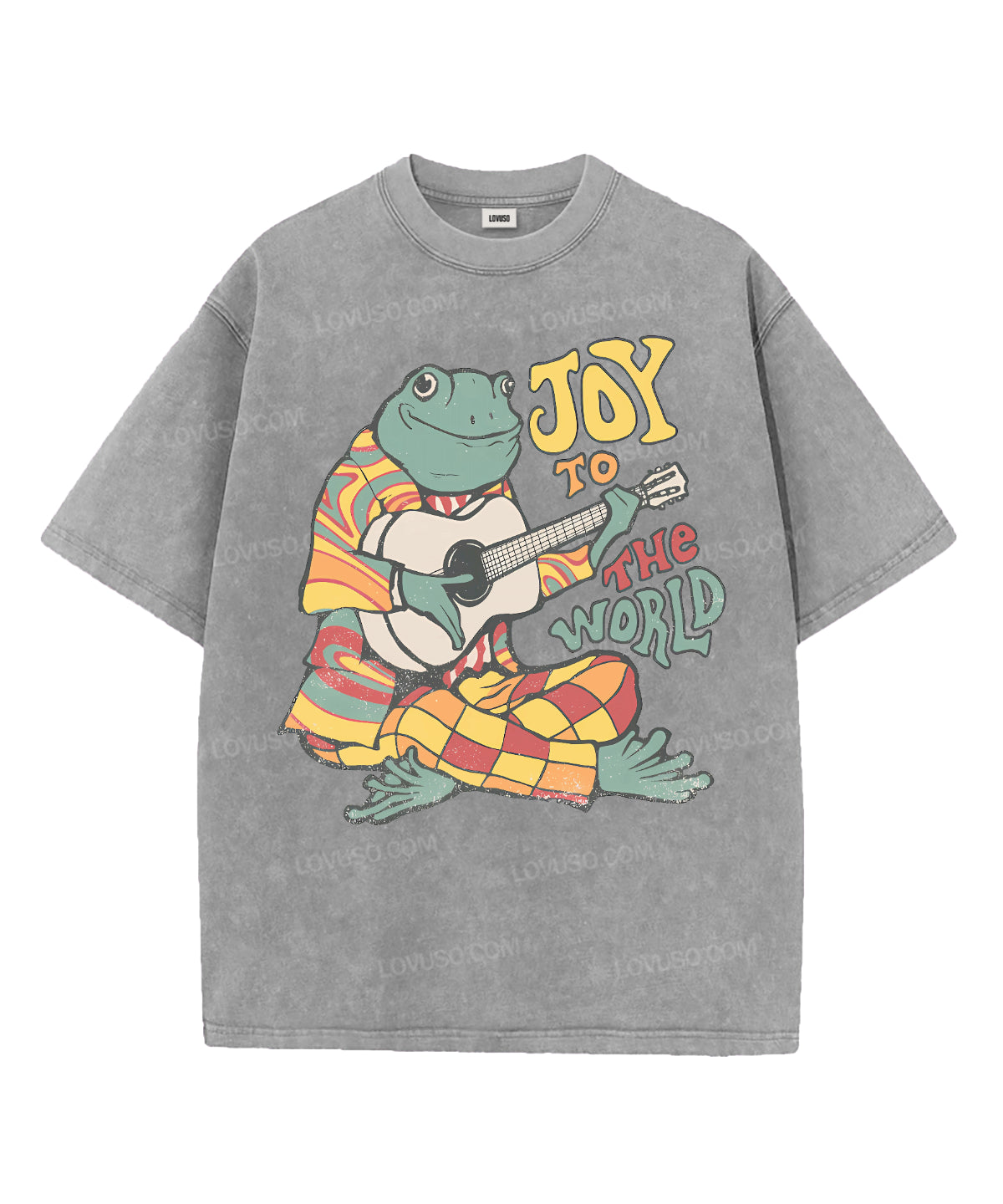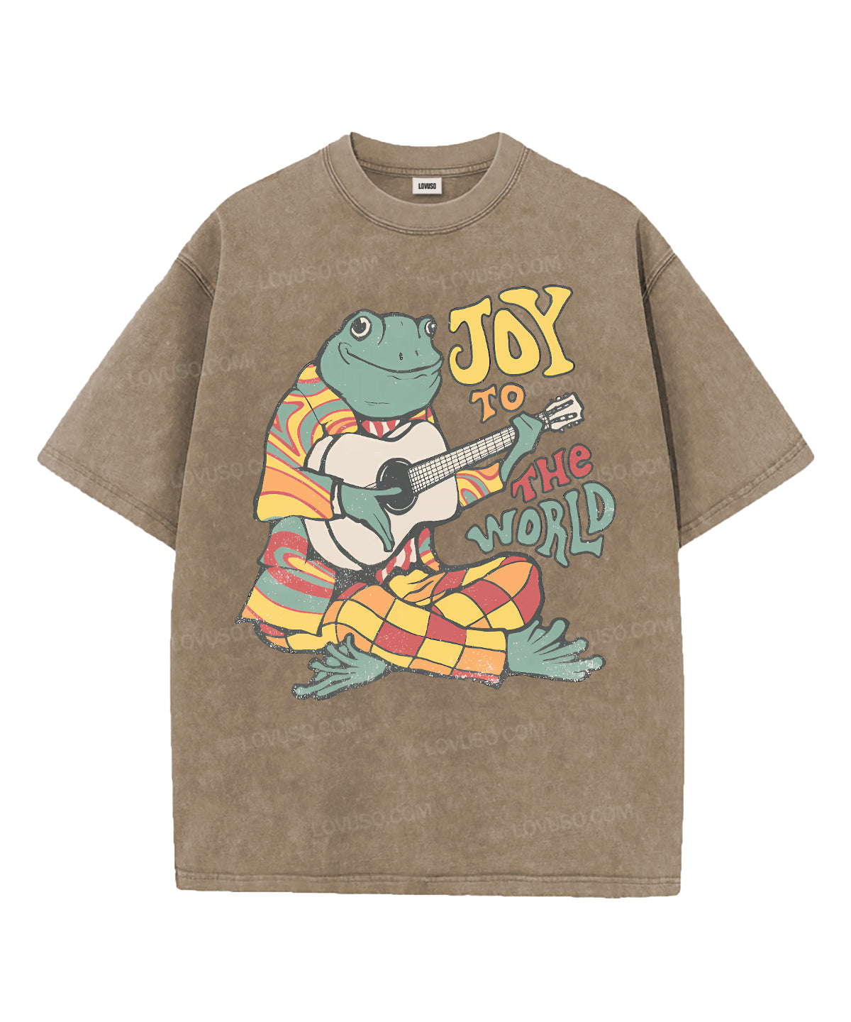 Funny Frog Joy To The World Double Sided Washed T-shirt