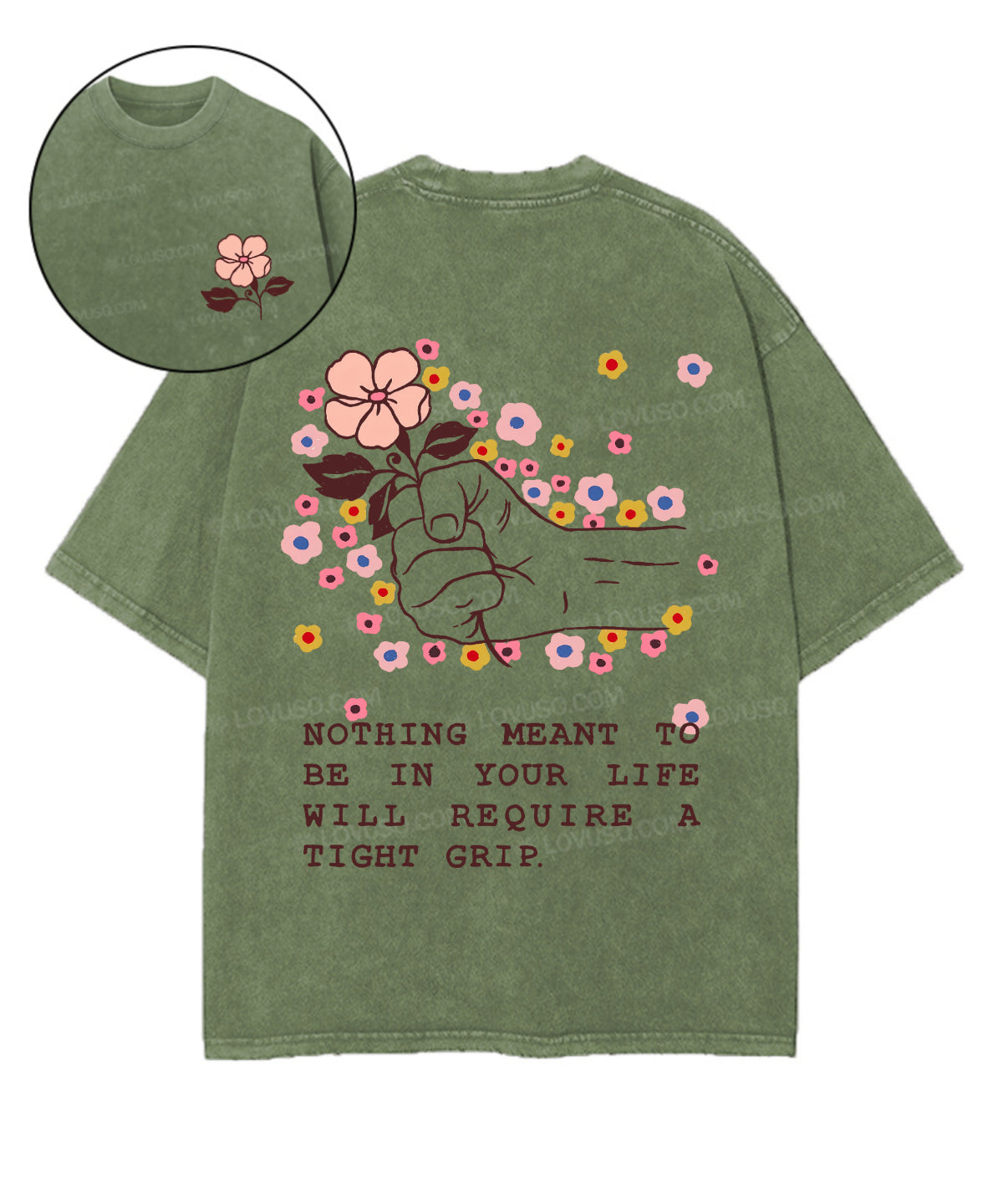 Nothing Meant To Be In Your Life WillL Require A Tight Grip Double Sided Washed T-shirt