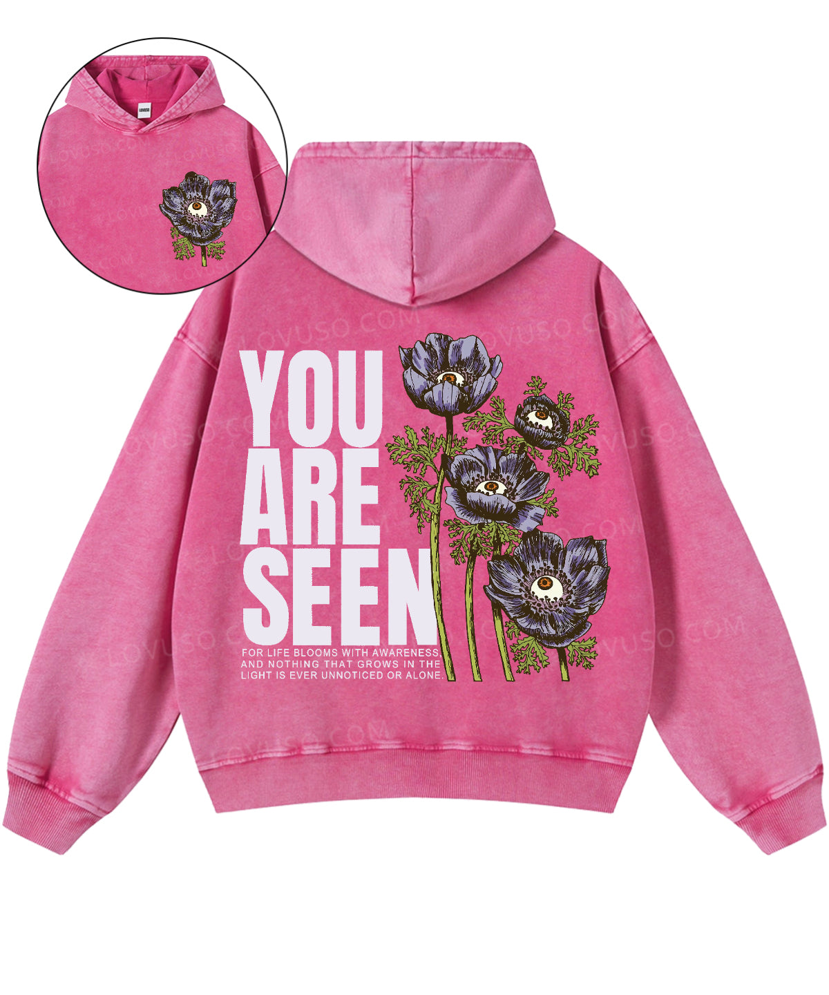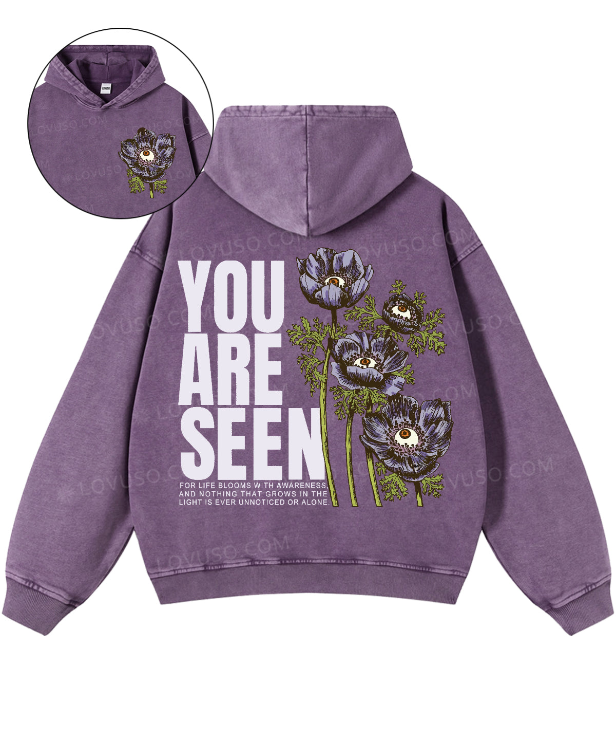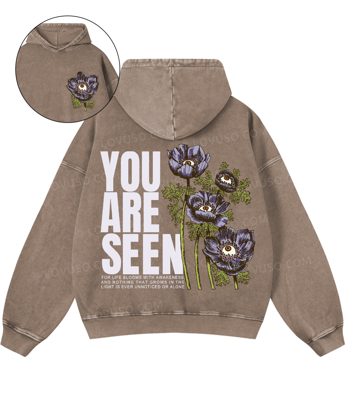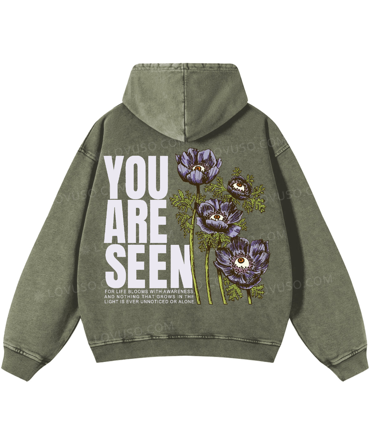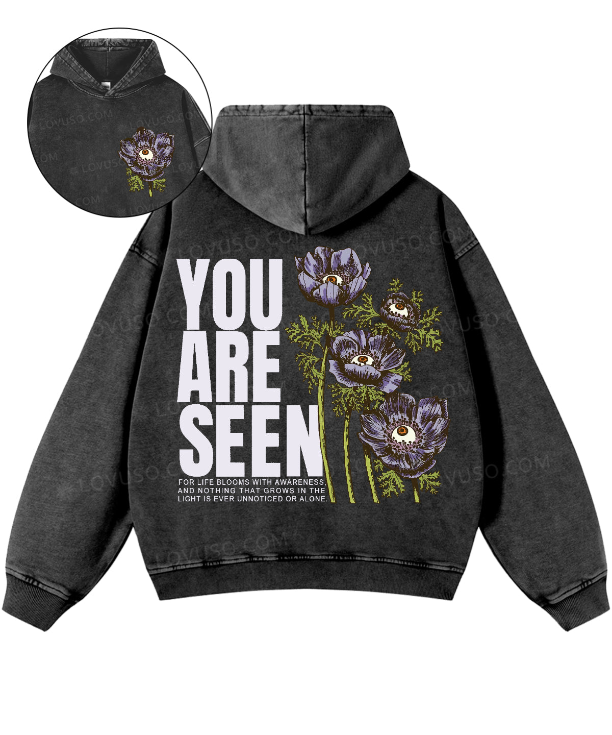 Washed for a naturally worn-in feel, this Lovuso hooded sweatshirt is relaxed, effortless, and quietly expressive —featuring a soft hood that creates a quiet sense of shelter — a small, personal space to slow down and stay present.