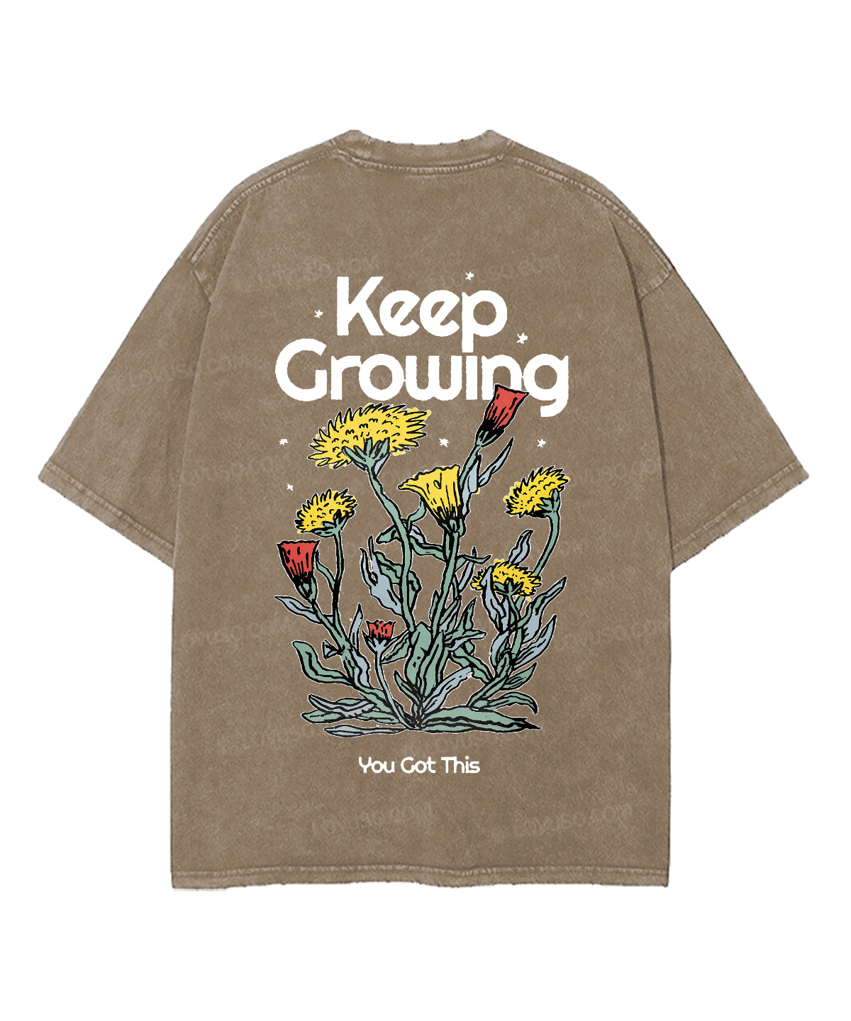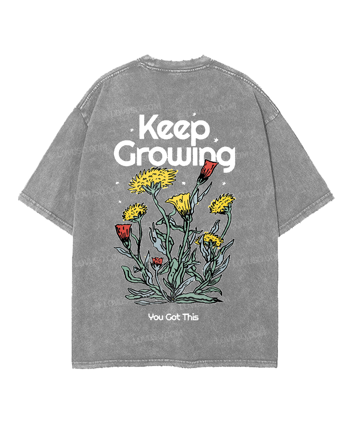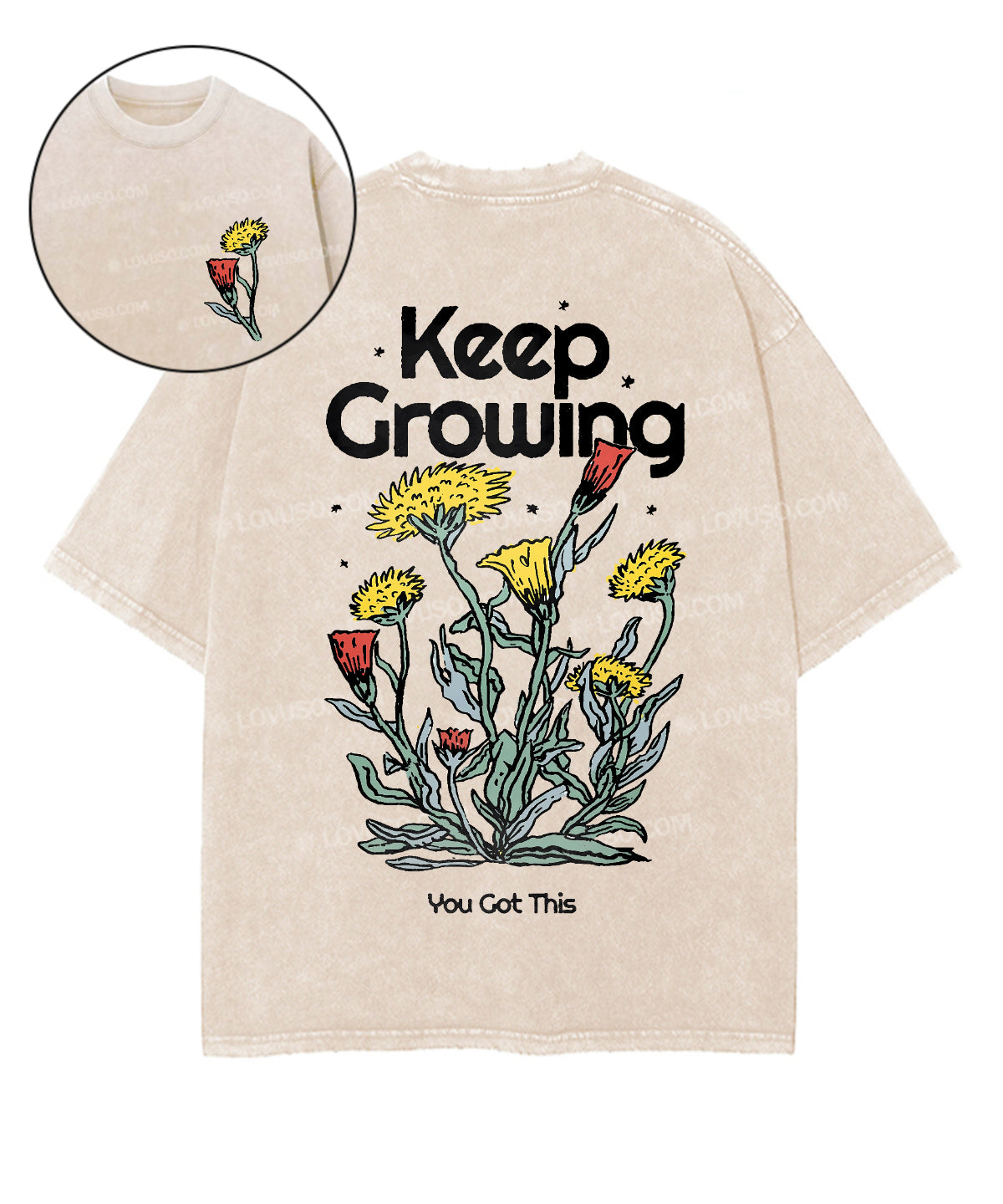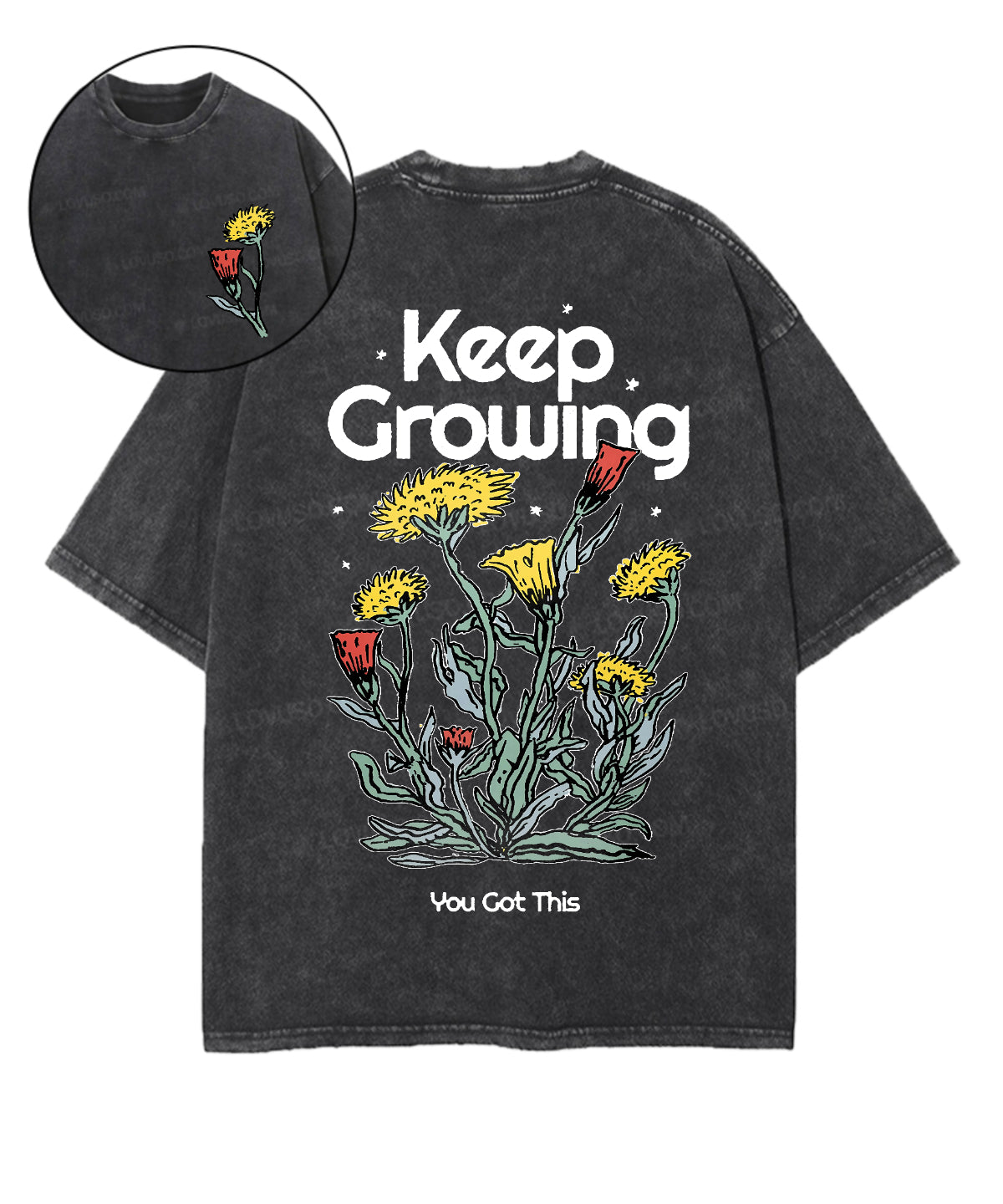 Retro Flower Keep Growing Double Sided Washed T-shirt