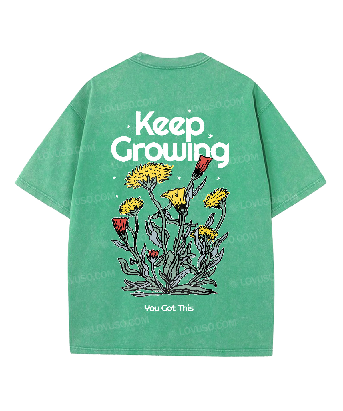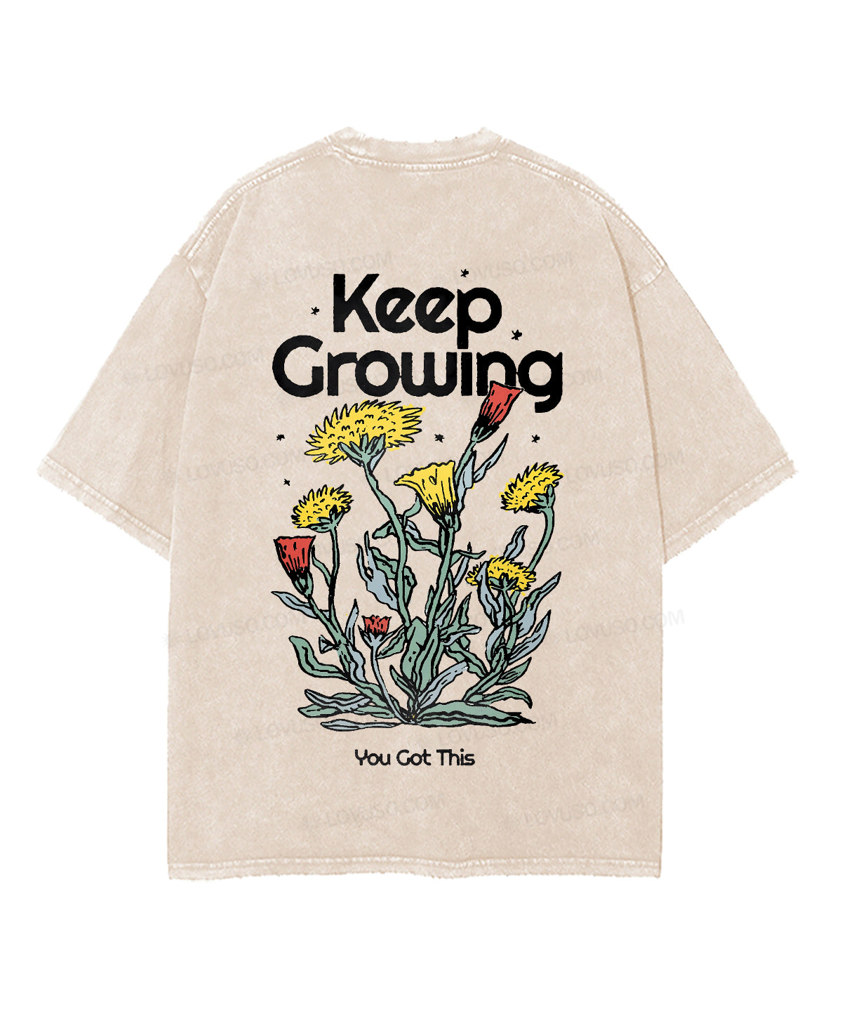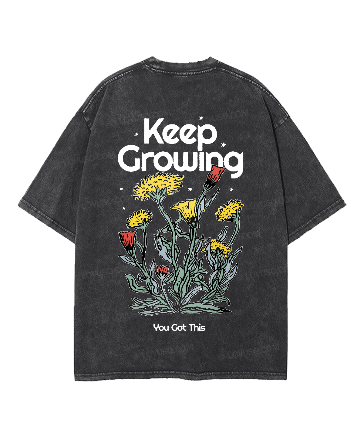 Retro Flower Keep Growing Double Sided Washed T-shirt