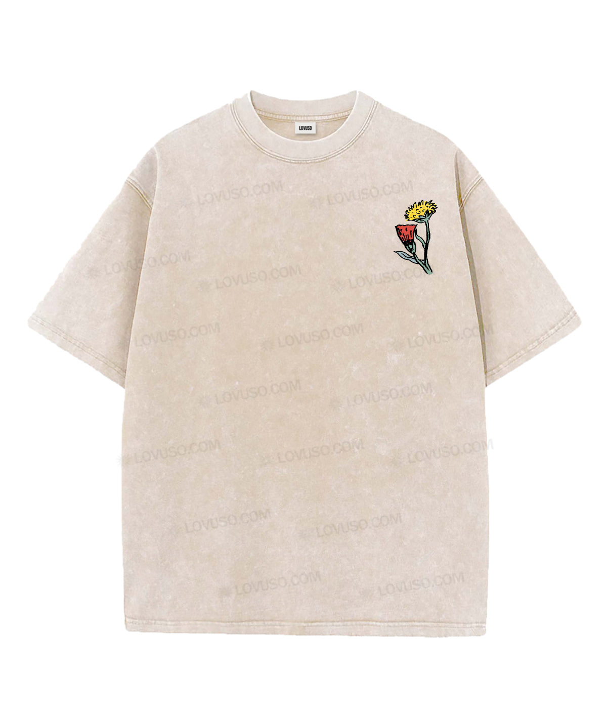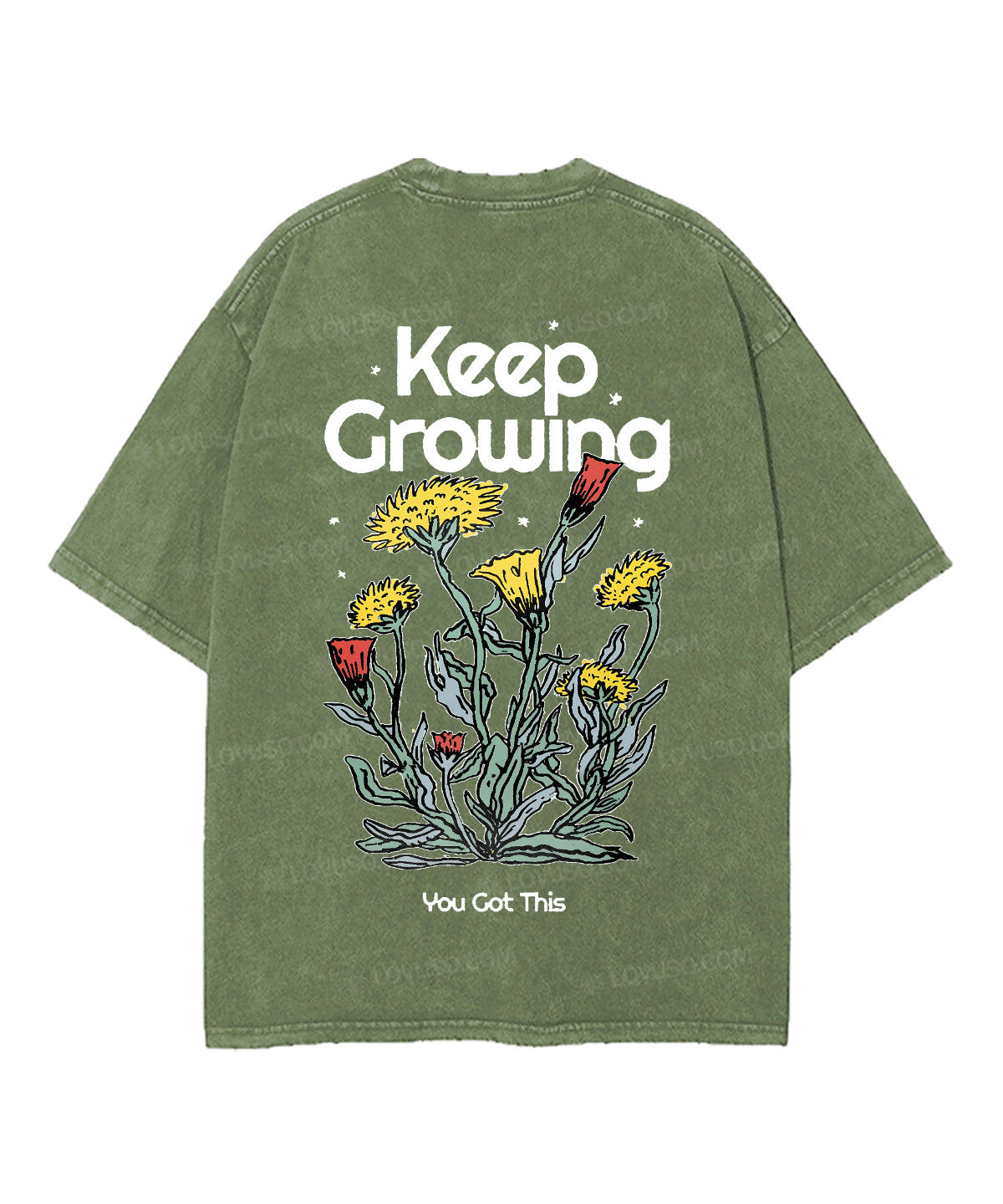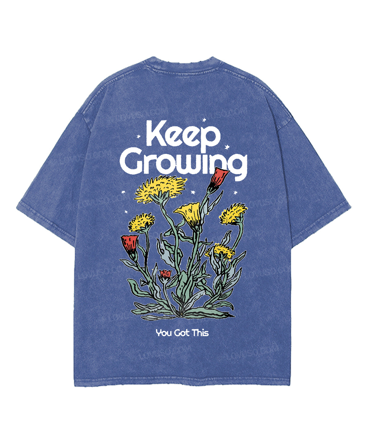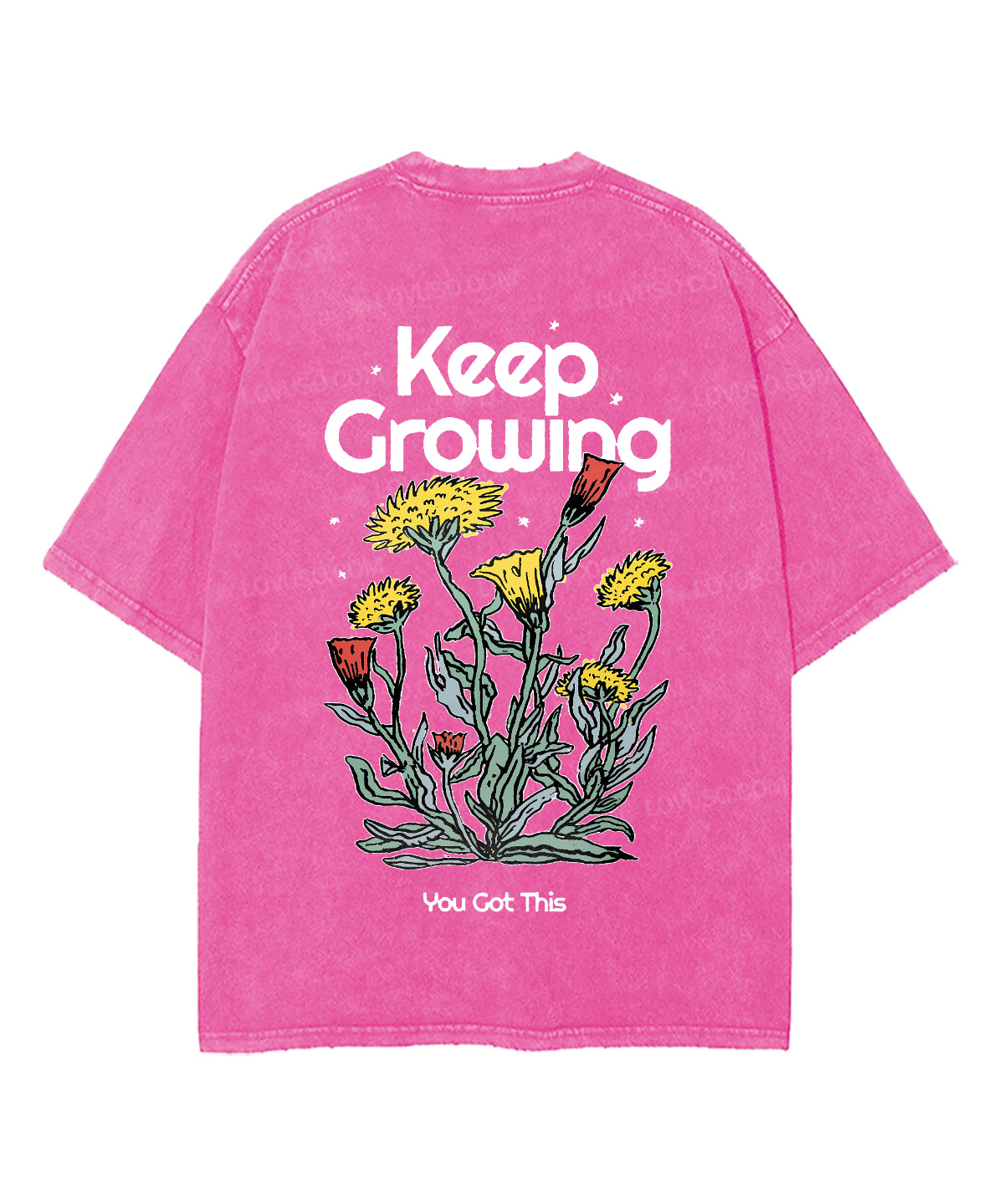 Retro Flower Keep Growing Double Sided Washed T-shirt