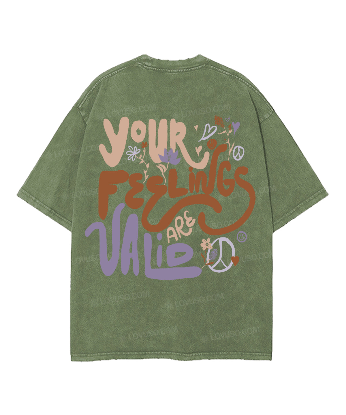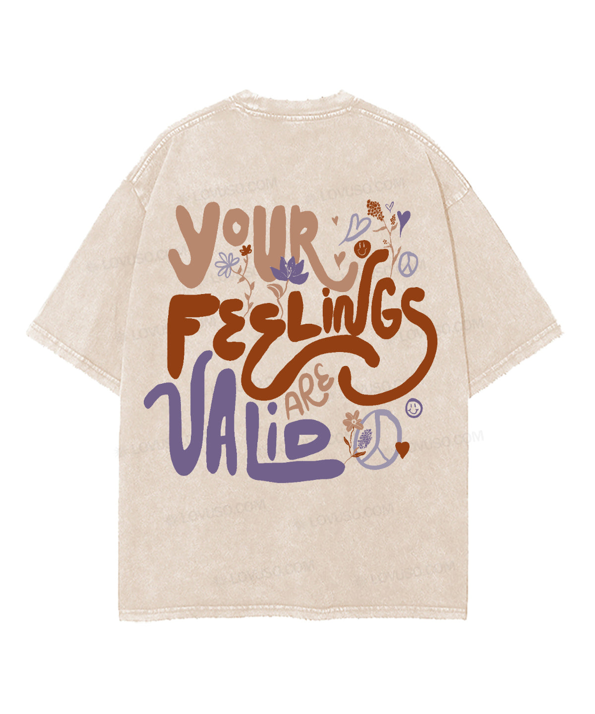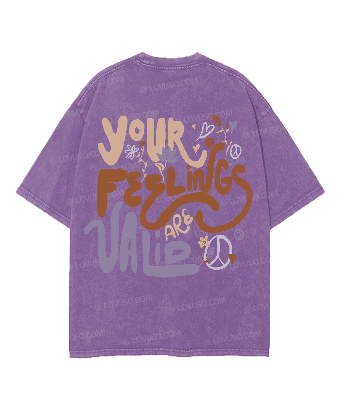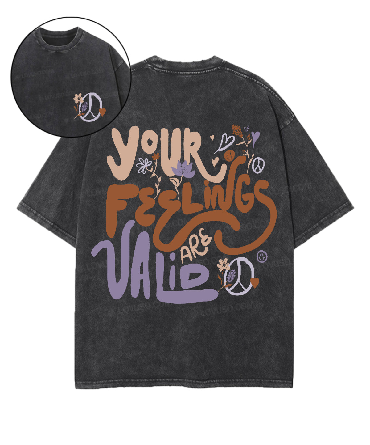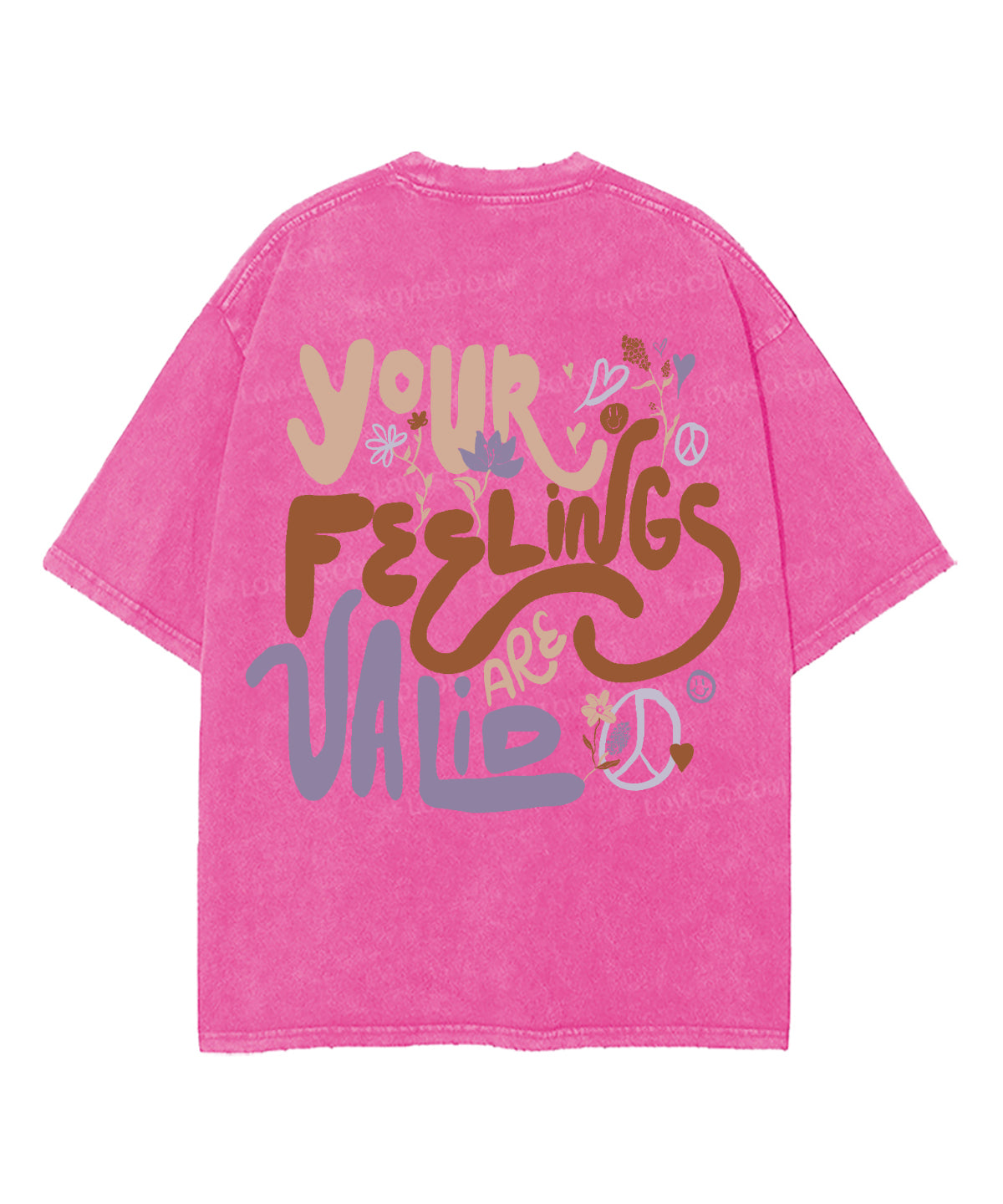 Retro Flower Your Feelings Are Valid Double Sided Washed T-shirt
