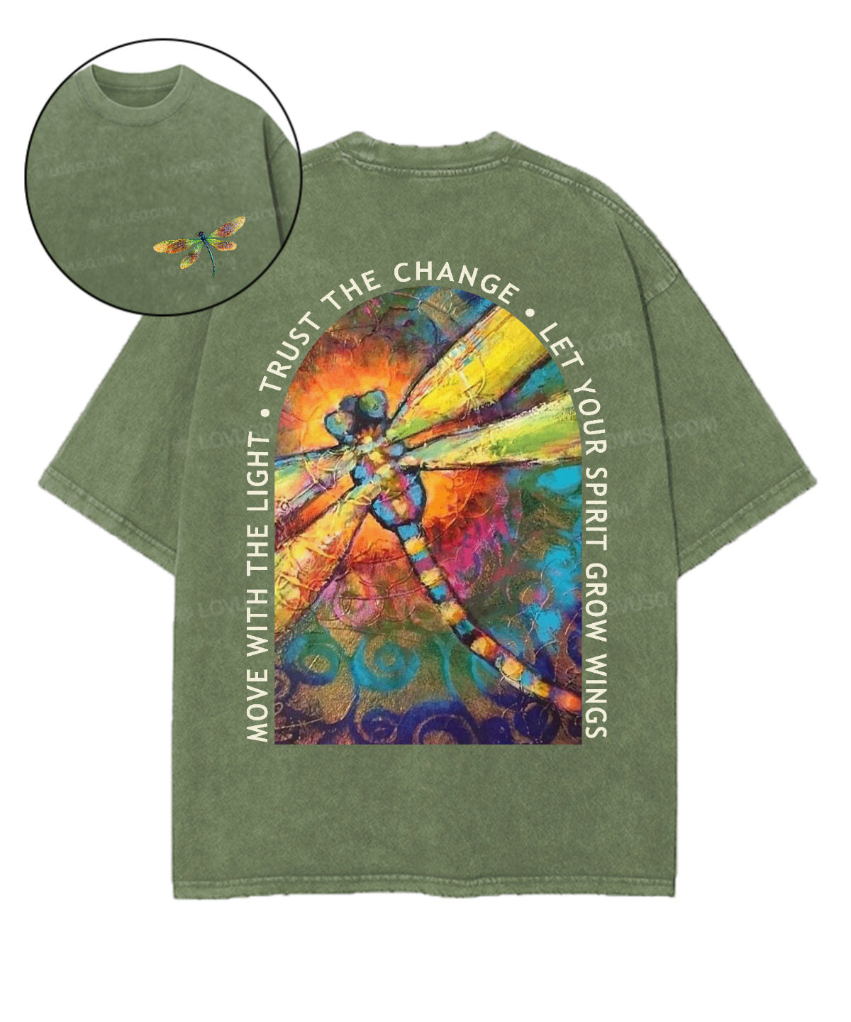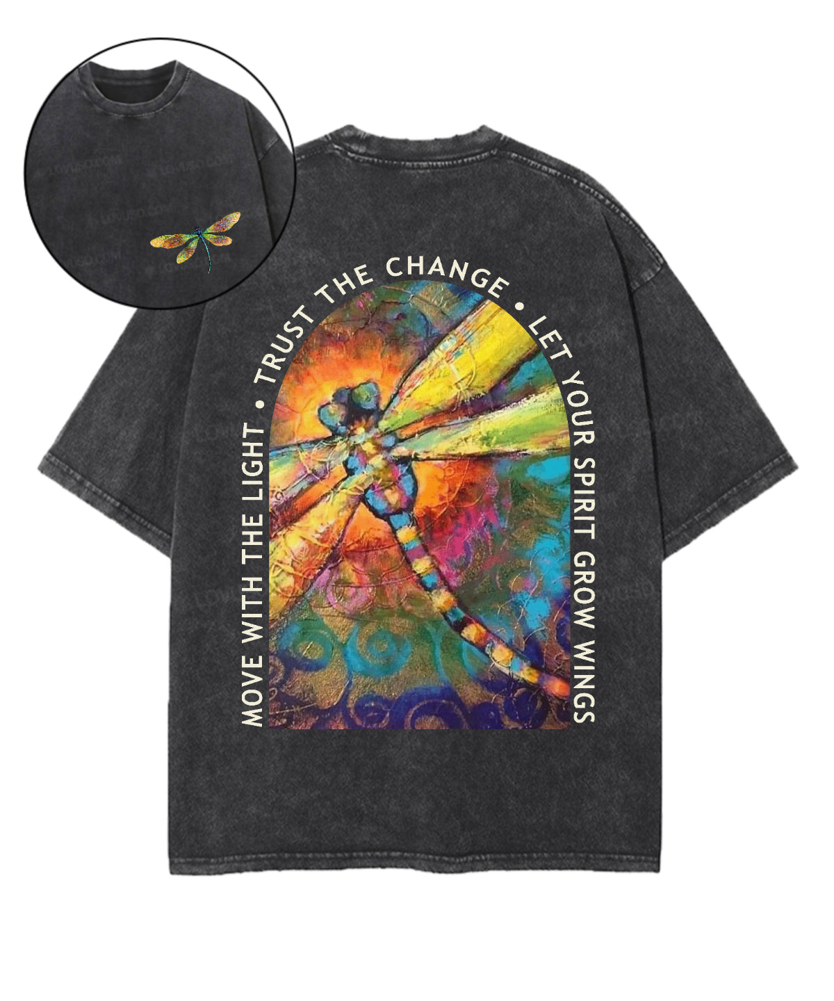 Retro Insec Let Your Spirit Grow Wings Double Sided Washed T-shirt