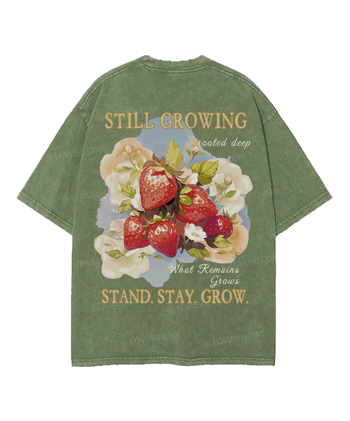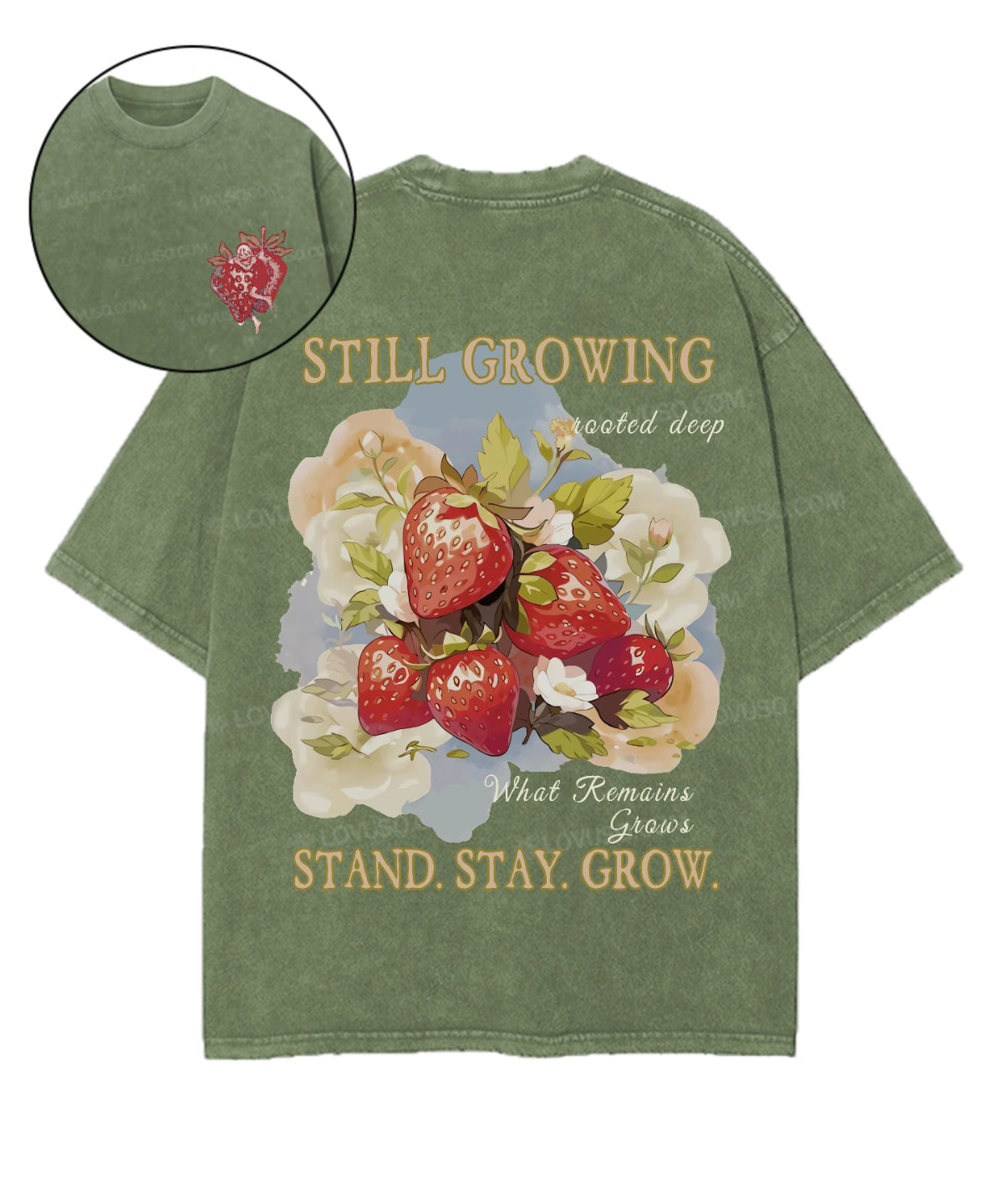 Retro Still Growing Stand Stay Grow Double Sided Washed T-shirt