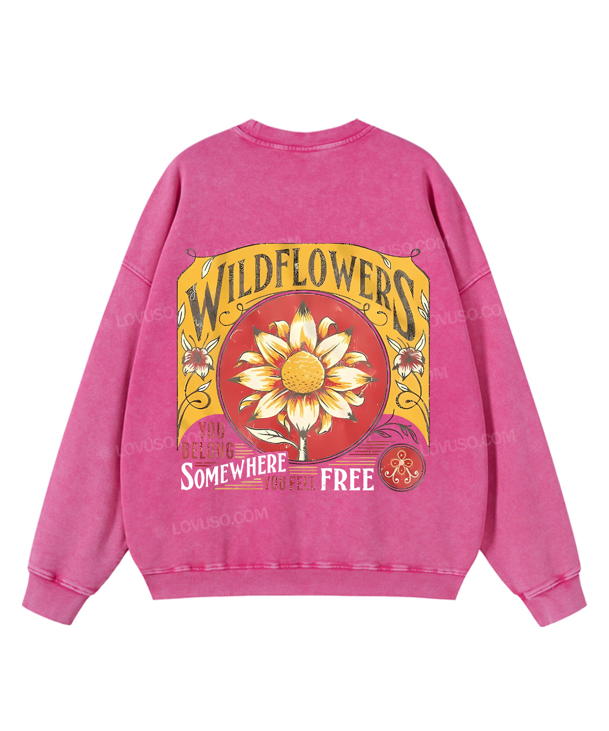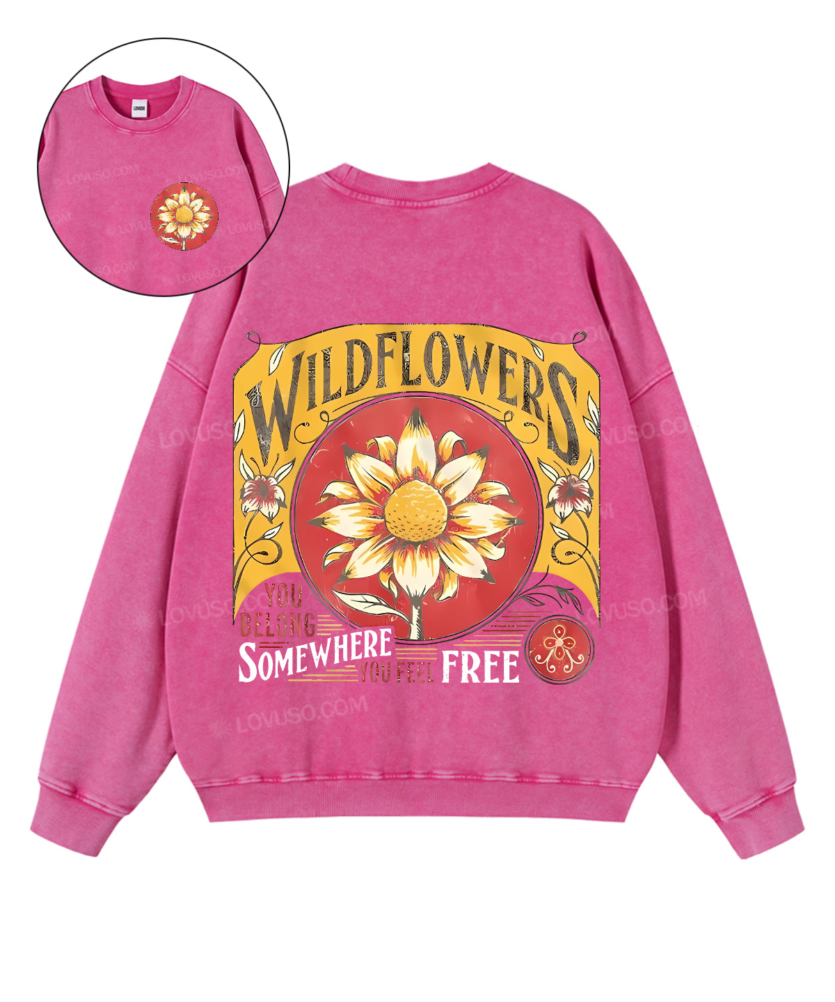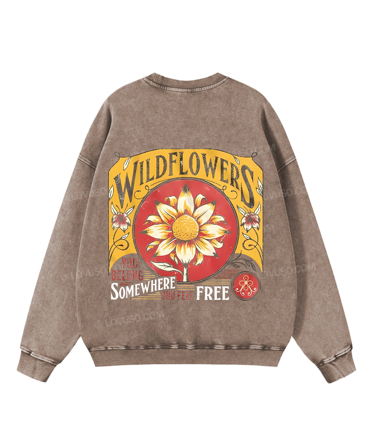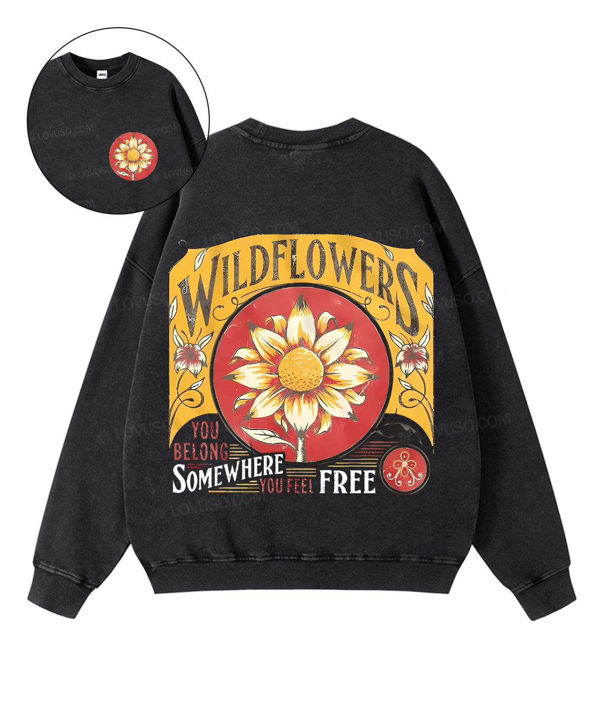 Retro Wildflowers You Belong Somewhere You Feel Free Double Sided Washed Sweatshirt