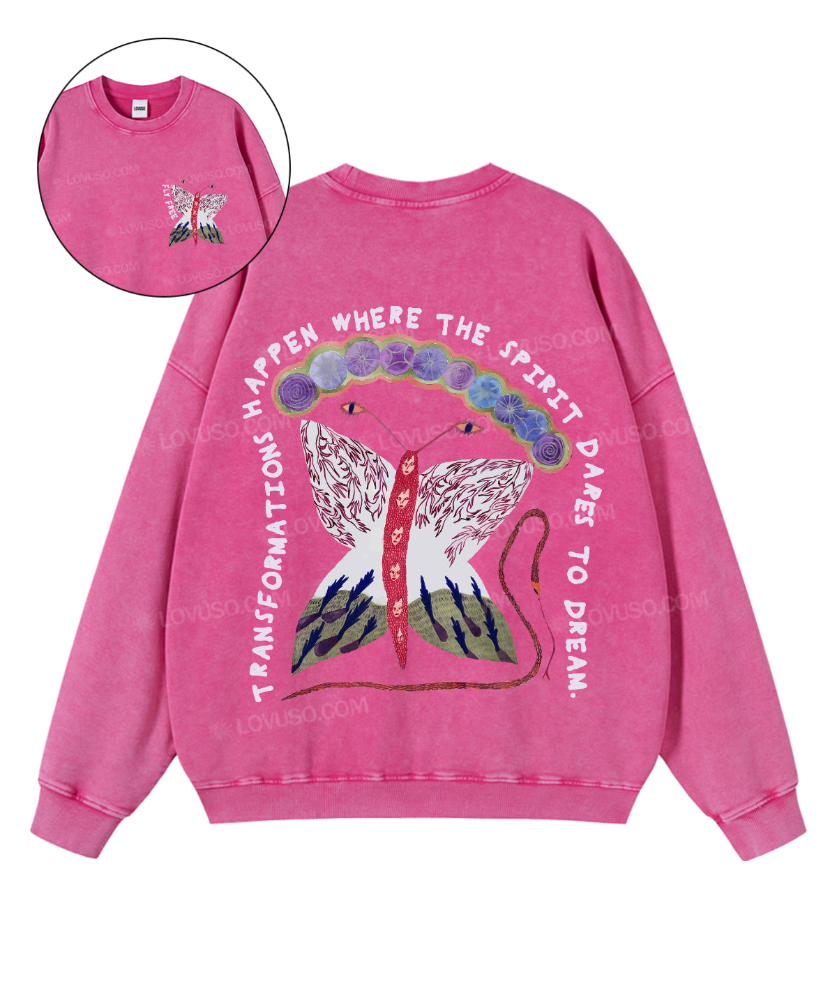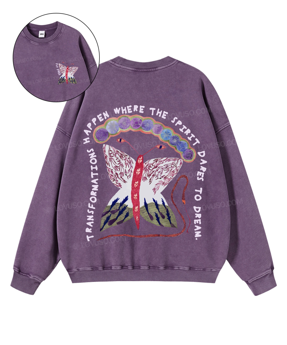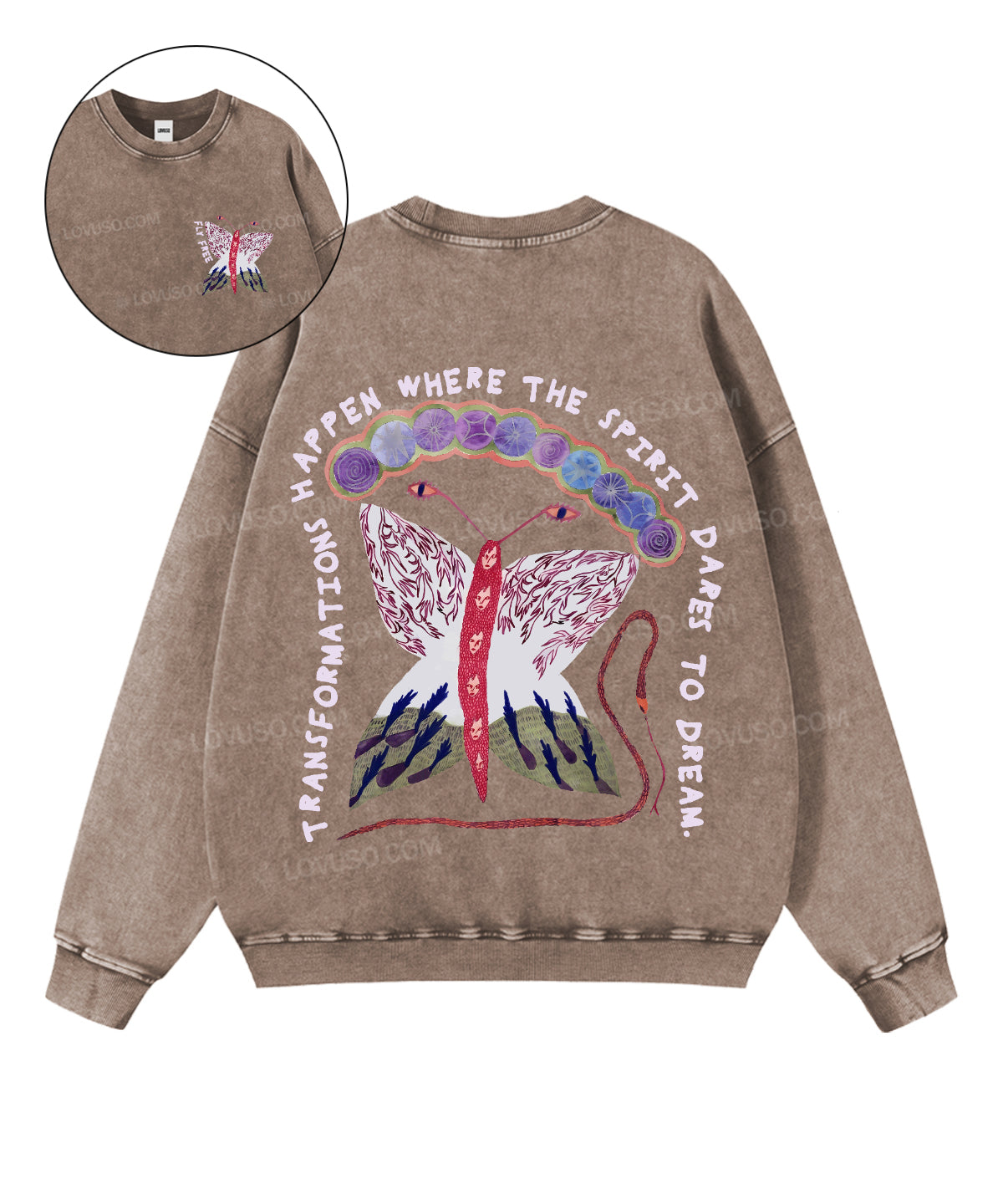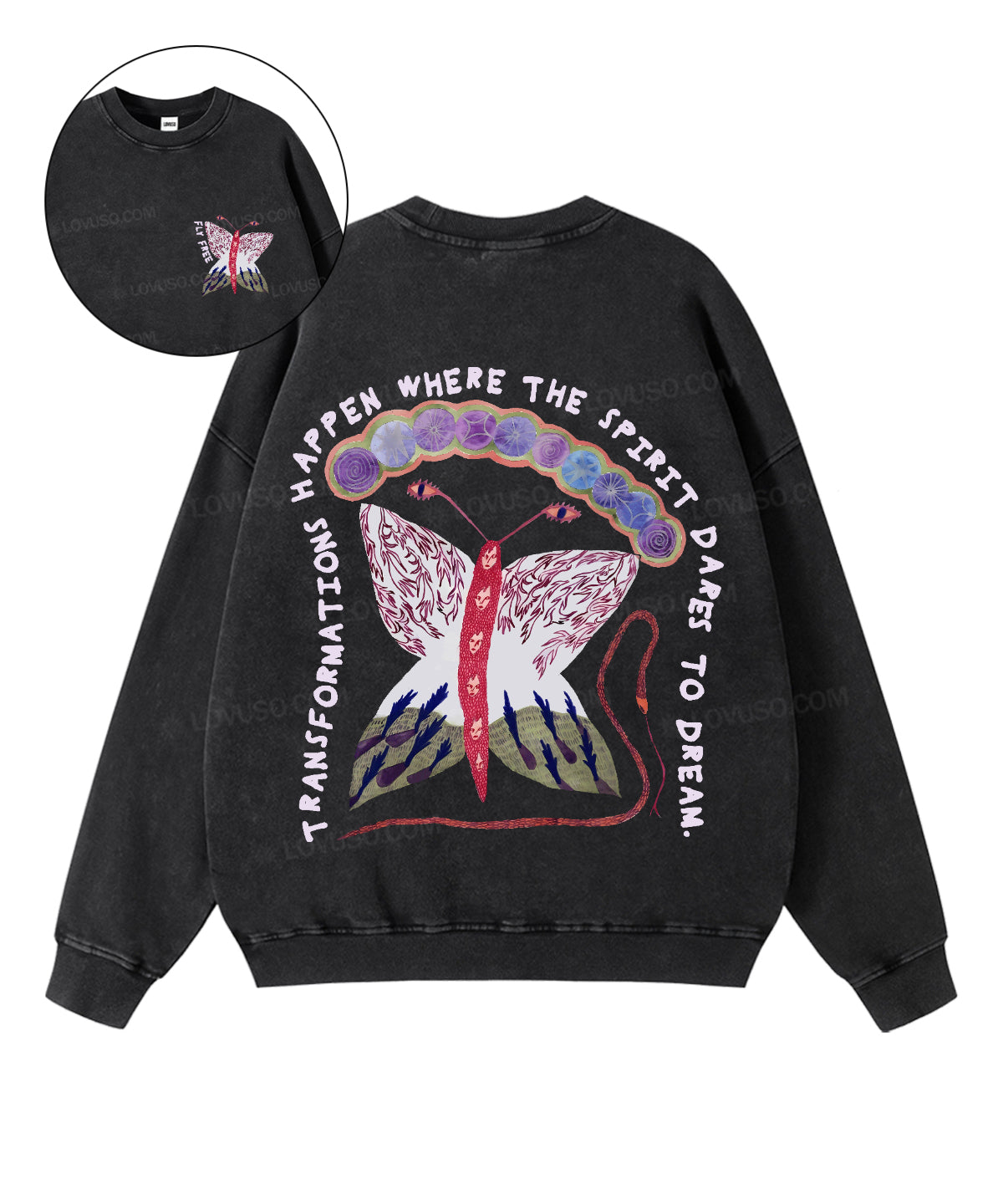 Spiritural Moth Fly Free Double Sided Washed Sweatshirt